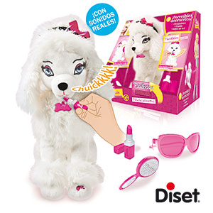¡La mascota preferida de Barbie! Simpática y moderna perrita de Hollywood. Muy glamurosa y siempre luce radiante. Gran compañera de emociones. Con su pintalabios, su cepillo y sus gafas de sol a la última. Cuando le aproximas sus accesorios reproduce los sonidos reales.